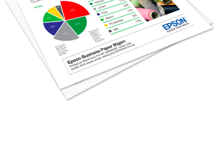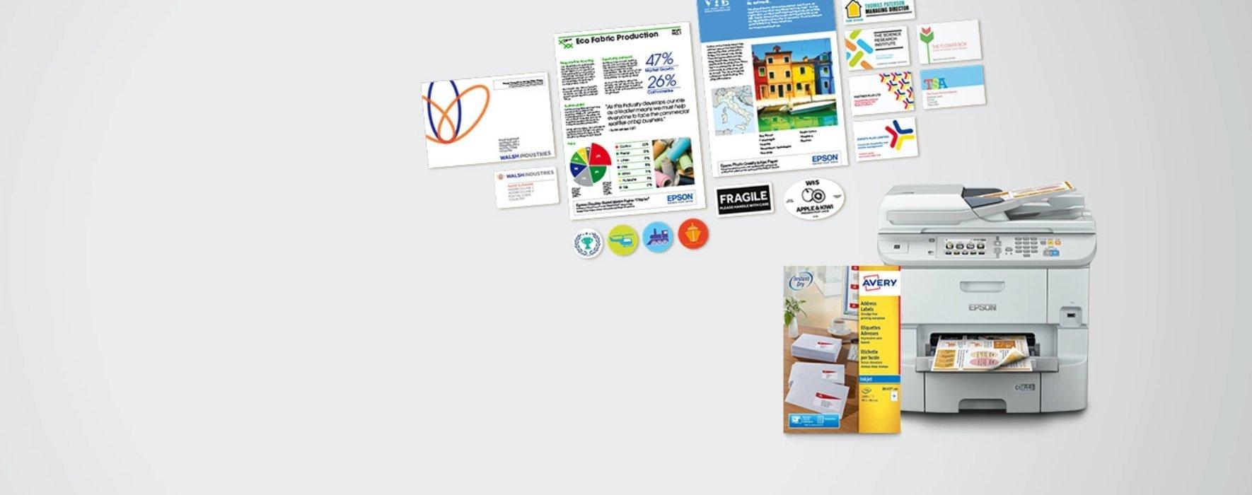 Med Epsons bläckstråleskrivare för företag kan du skriva ut ett stort antal olika brevpapper och marknadsföringsmaterial i hög kvalitet och på begäran. Förutom att vara praktisk och kostnadseffektiv genom att låta dig skriva ut efter dina egna behov, minskar den även utrymmeskraven samt sänker mängden eventuellt spill. Vårt PrecisionCore-skrivhuvud gör det möjligt att skriva ut på olika mediatyper, till exempel tjockare papper, etiketter samt blankt papper, vilket gör att du konsekvent kan bibehålla ditt varumärke. Skriv ut allt från visitkort, flygblad, brevhuvuden och kuvert till etiketter ‒ valet är ditt.